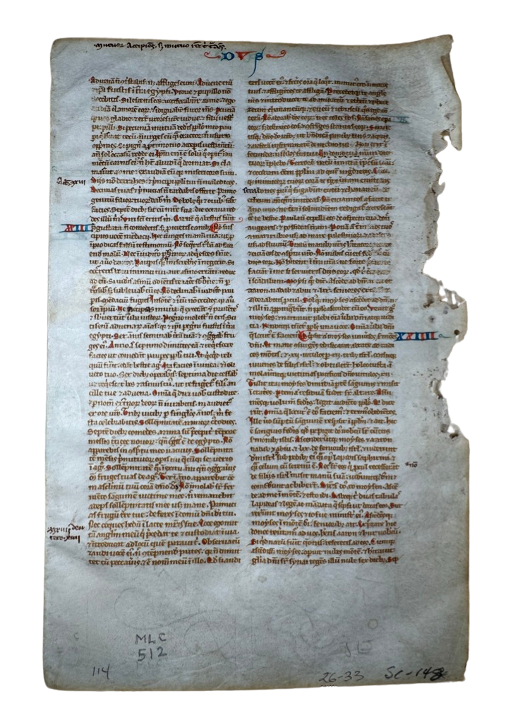 13th C. Paris Bible Leaf – Exodus 23-26 – Latin Manuscript on Vellum
