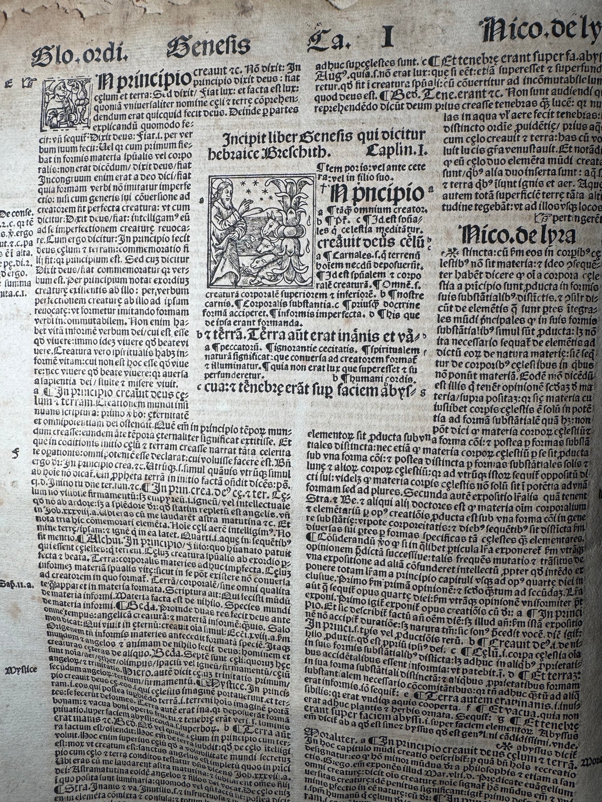 Each leaf from this edition stands as a window into the transition from manuscript to print, embodying over a millennium of biblical scholarship. With its detailed commentary and Renaissance woodcuts, this page would make a striking and meaningful centerpiece for any collection of early printed Bibles or Reformation-era theology.