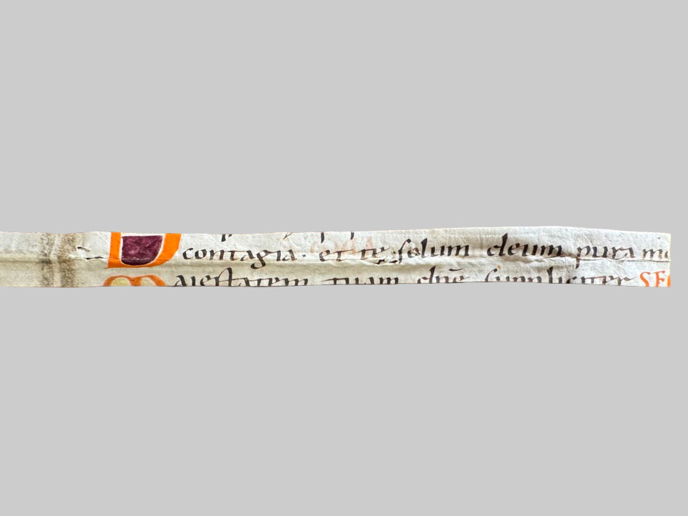 A genuine medieval manuscript fragment on vellum, written in a fine Carolingian minuscule hand, dating from the 10th to very early 11th century A.D.