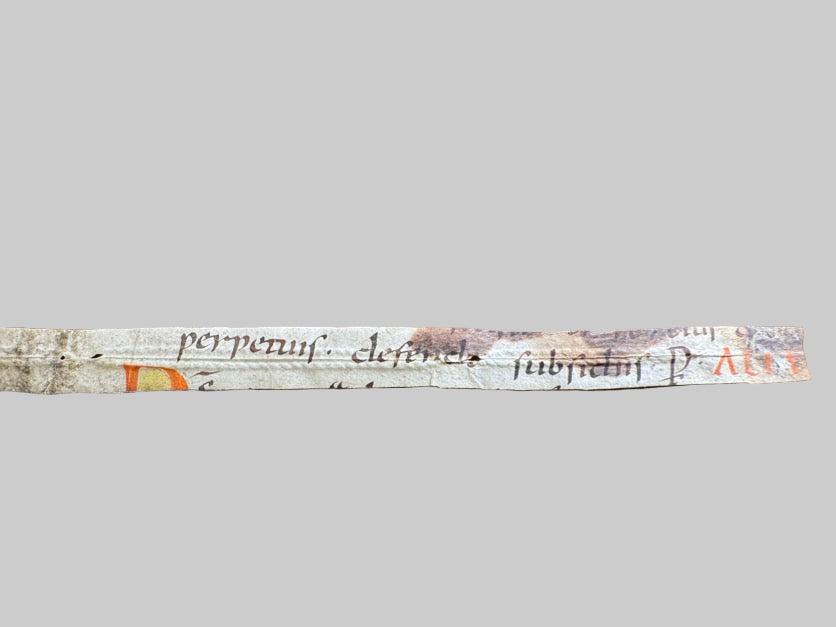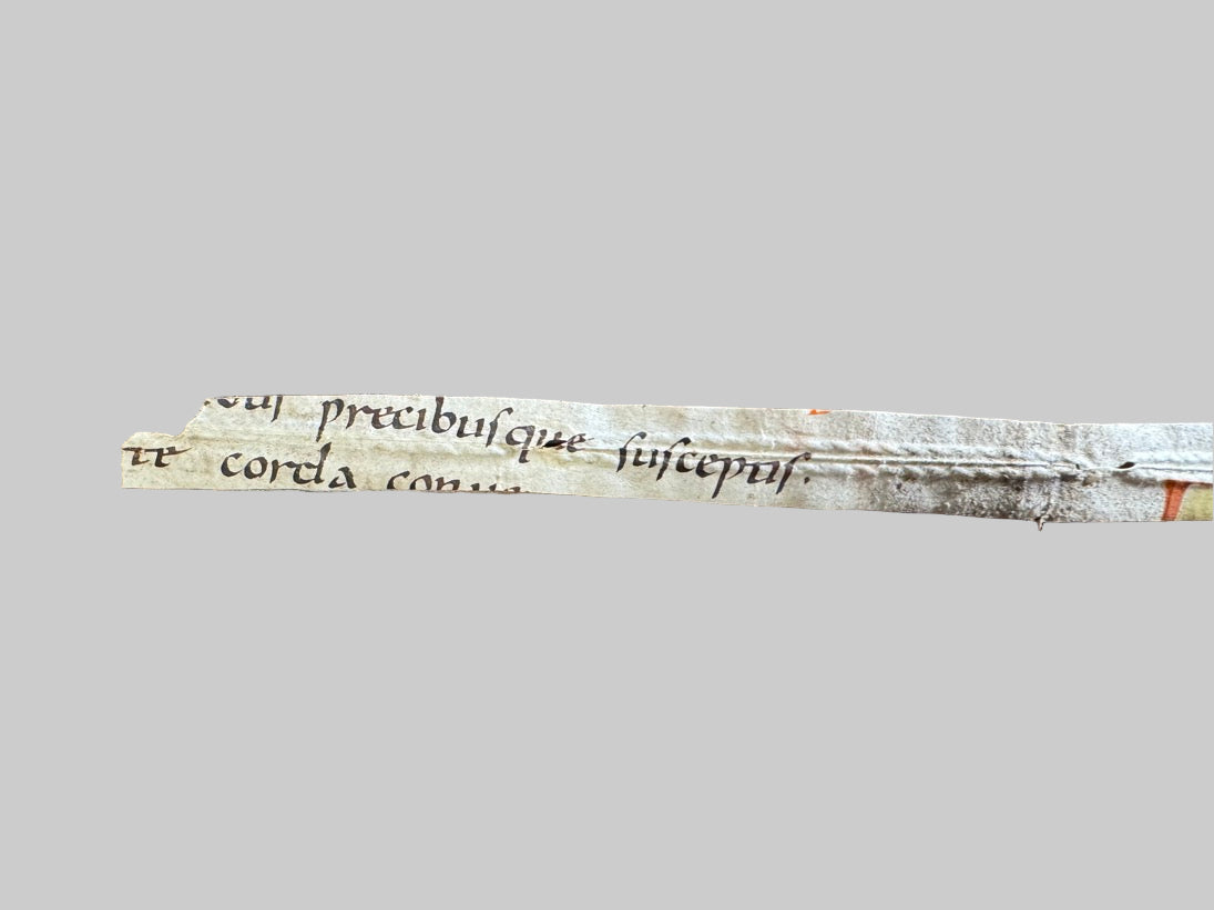 This narrow strip of parchment once formed part of a large liturgical manuscript (likely a Missal or Sacramentary) produced in a Swiss or German scriptorium, quite possibly St. Gallen Abbey, one of the greatest centers of Carolingian learning and book production. The fragment was later recycled as binding material in a ca. 1485 Basel incunable, where it remained hidden for centuries before being recovered.